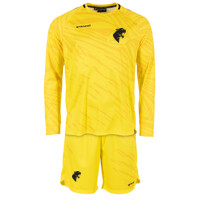 This Trick Long Sleeve Keeper Set features a sublimated print and is produced out of 100% recycled polyester. The shorts have a drawstring, which keeps the shorts nicely in place. Stanno logos are printed on the shoulders and right chest. The shirt has long sleeves, a longer back and side slits that ensure optimal freedom of movement. The junior sizes come with protective padding on the elbows.